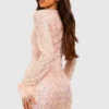 BOOHOO Tall Sequin Feather Cuff Bodycon Dress