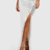 BOOHOO Tall Side Slit Sequin Maxi Skirt