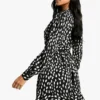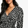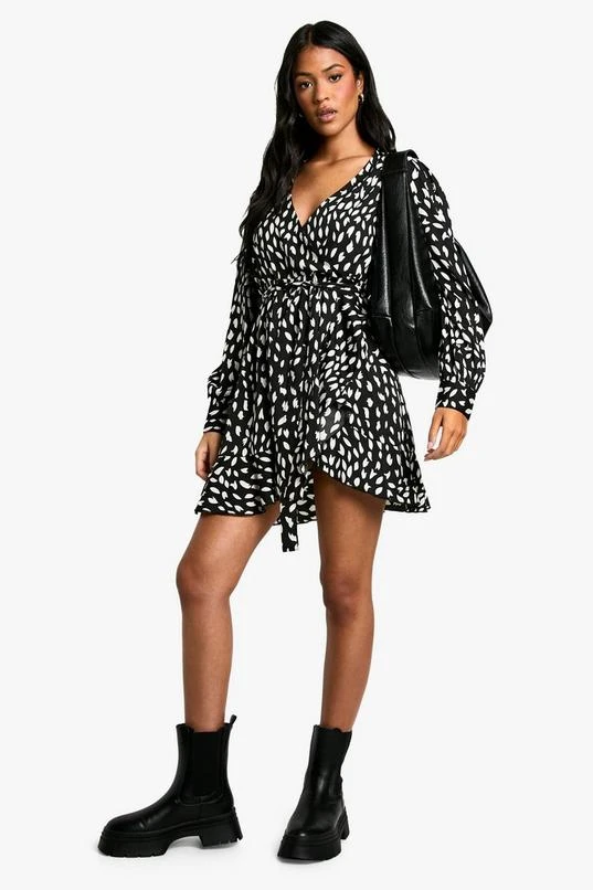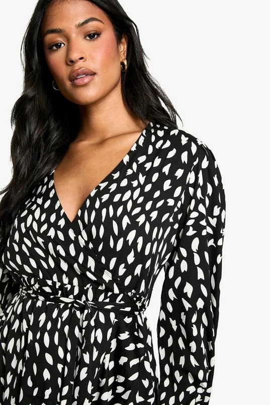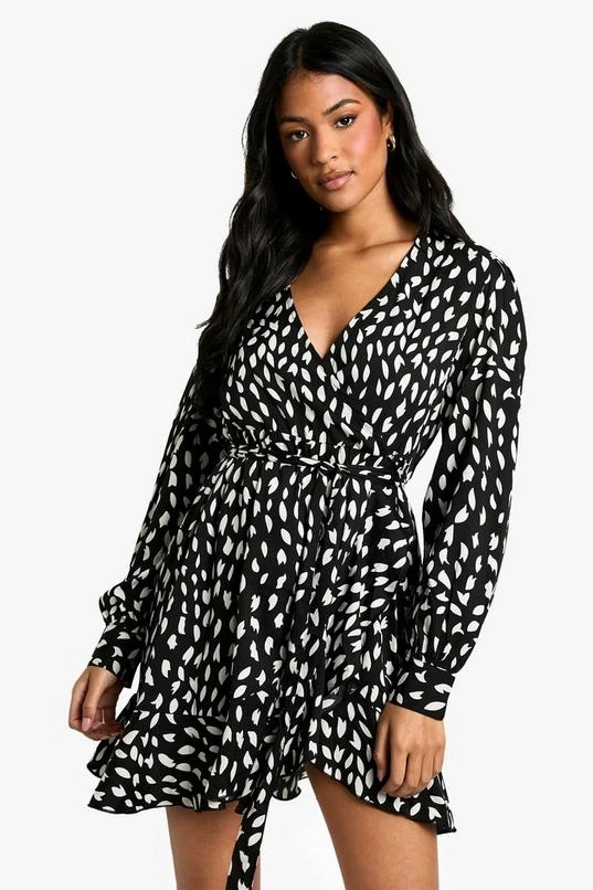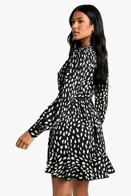 BOOHOO Tall Smudge Print Ruffle Woven Wrap Dress