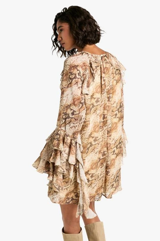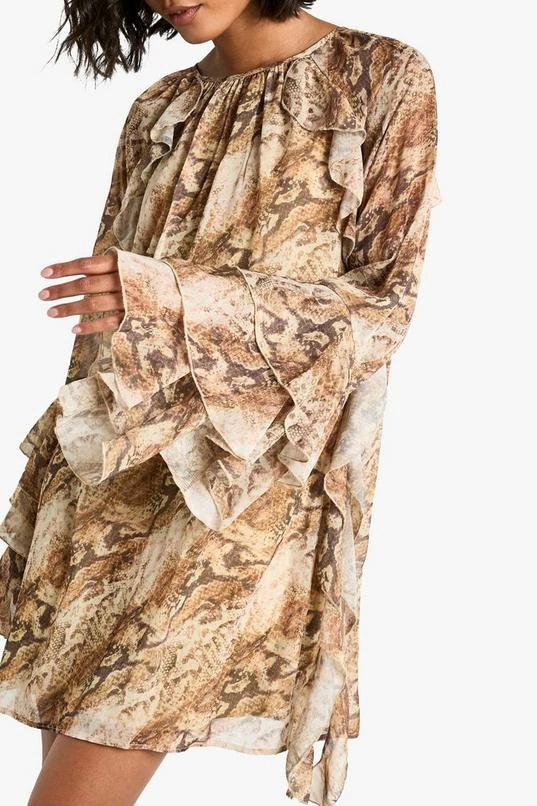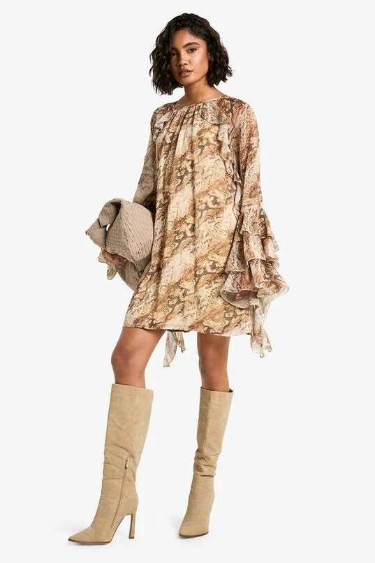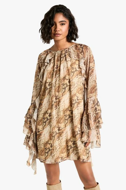 BOOHOO Tall Snake Ruffle Flare Sleeve Mini Shift Dress