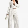 BOOHOO Tall Stripe Linen Look Wide Leg Trouser