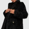 BOOHOO Tall Textured Faux Fur Double Breasted Coat