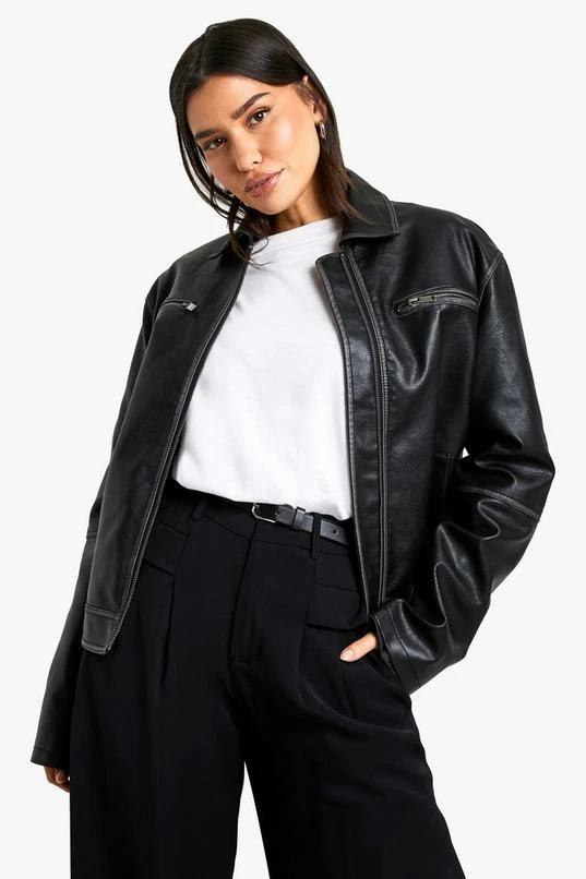 BOOHOO Tall Vintage Look Faux Leather Zip Jacket
