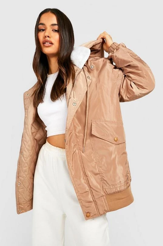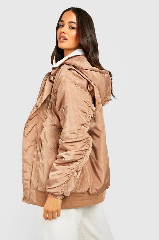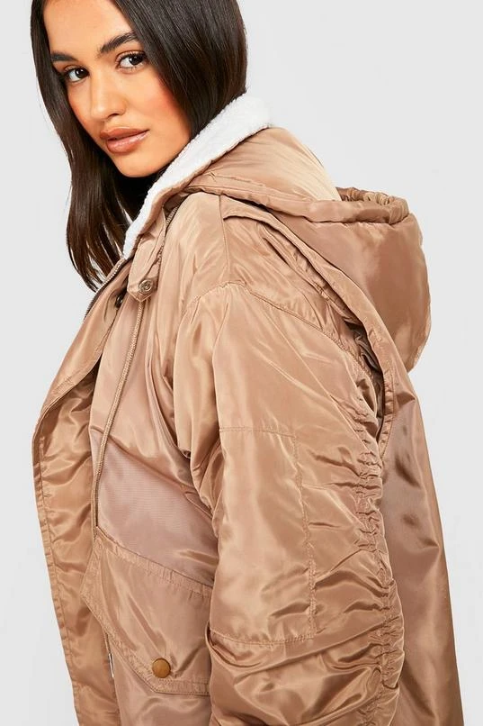 BOOHOO Teddy Trim Oversized Padded Bomber Jacket