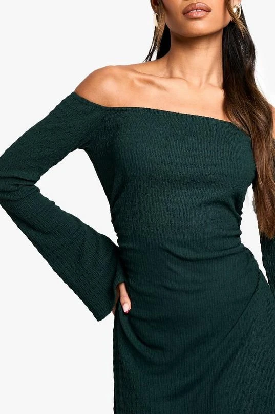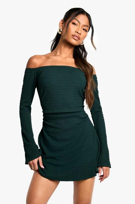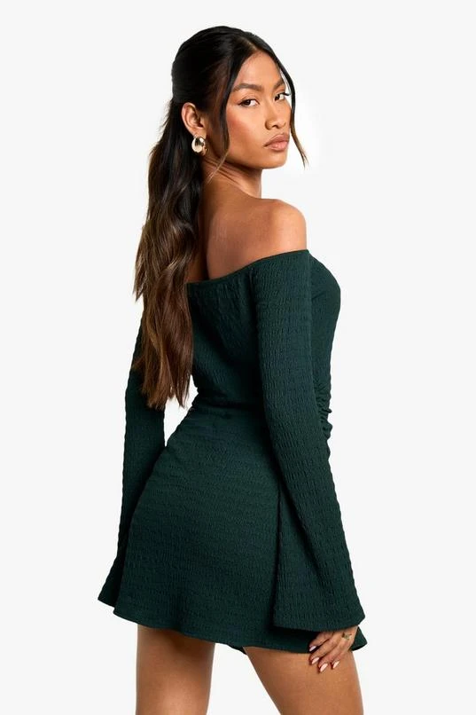 BOOHOO Textured Bardot Skater Dress