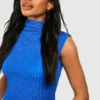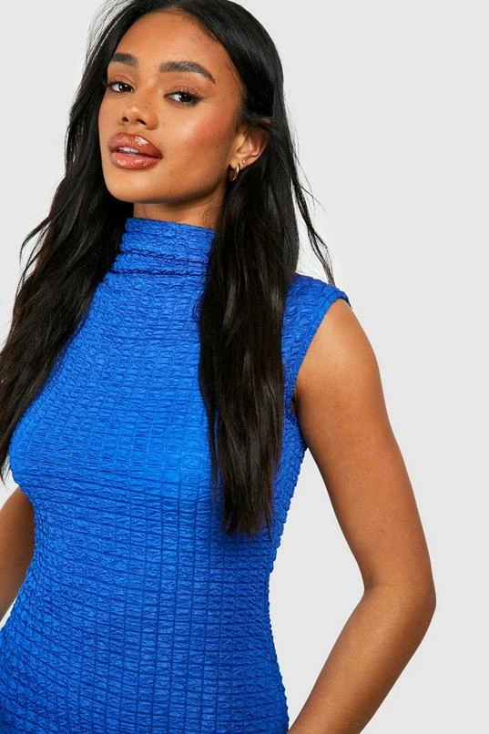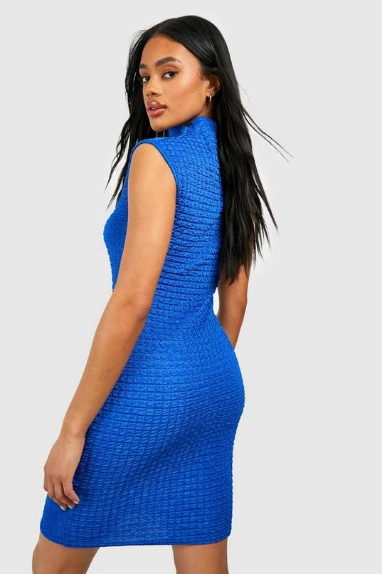 BOOHOO Textured Bubble High Neck Sleeveless Mini Dress