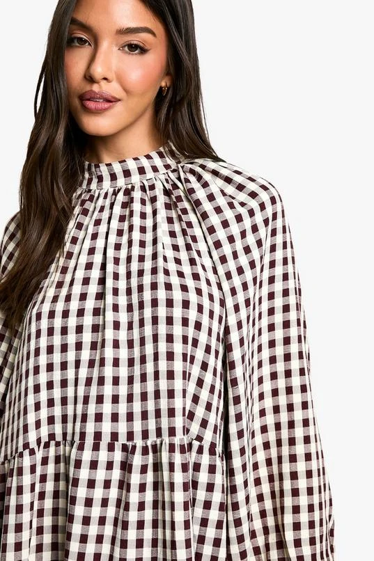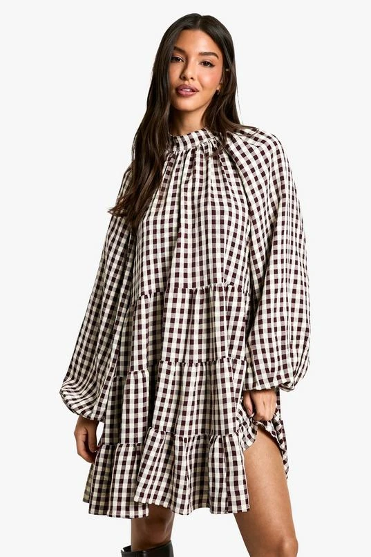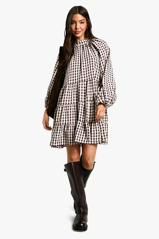 BOOHOO Textured Check Smock Dress