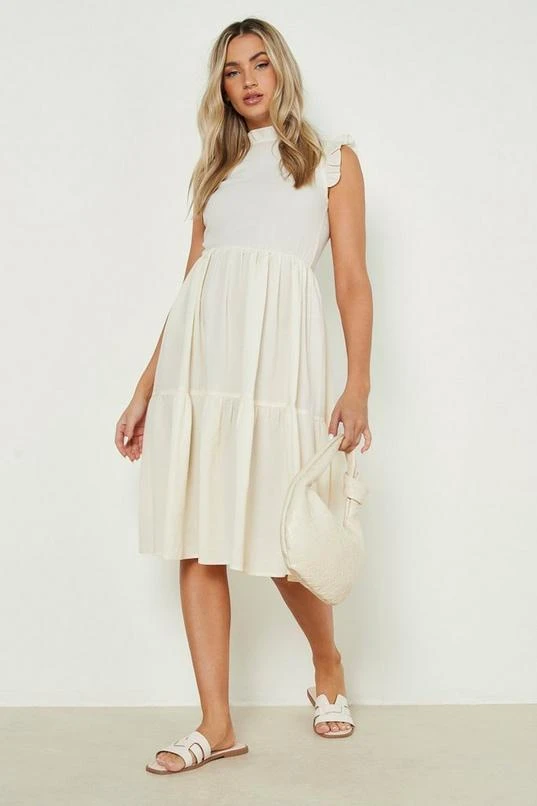 BOOHOO Textured Frill Tiered Midi Smock Dress