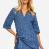 BOOHOO Textured Gingham Wrap Dress