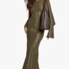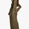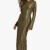 BOOHOO Textured Long Sleeve Column Maxi Dress