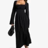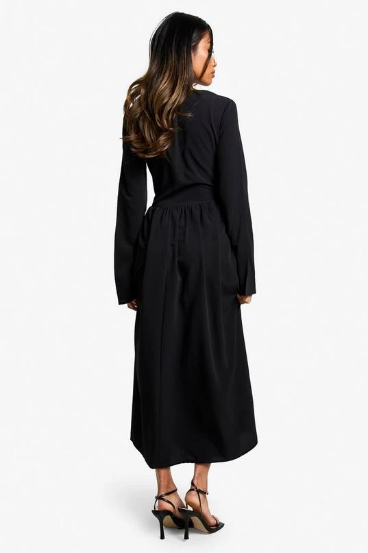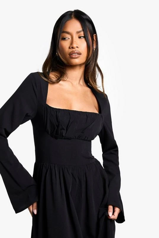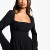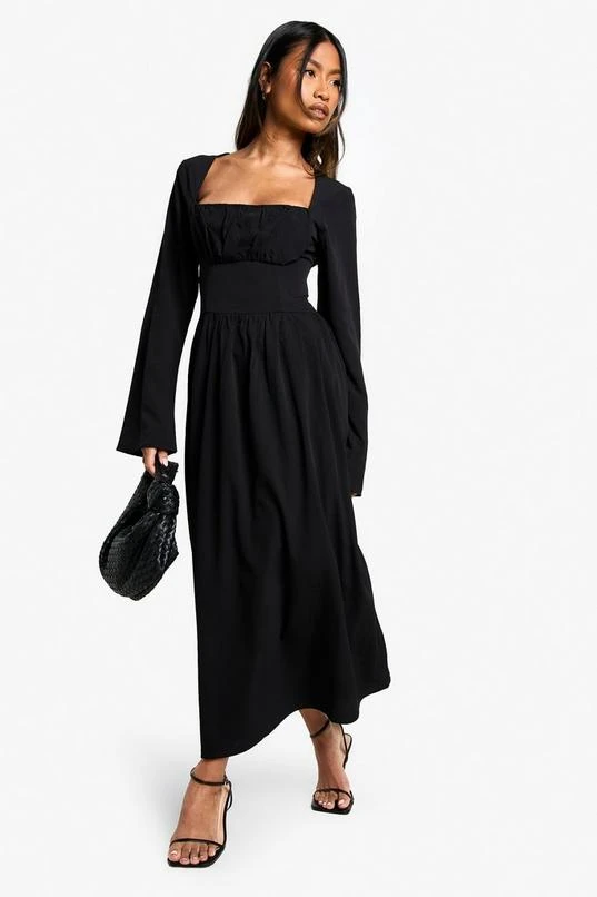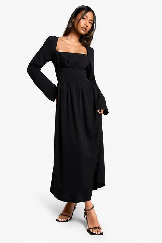BOOHOO Textured Long Sleeve Milkmaid Midaxi Dress