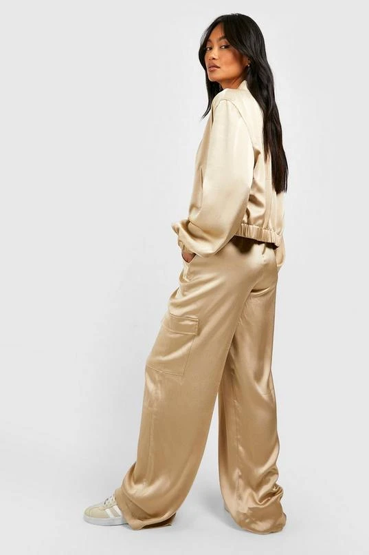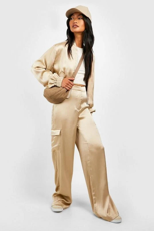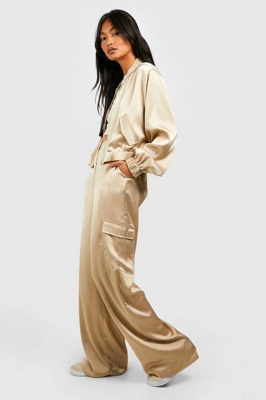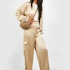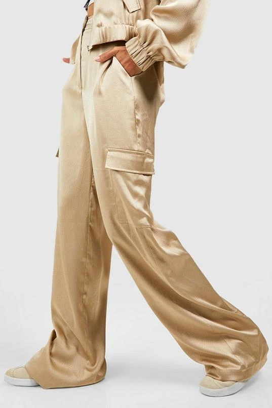 BOOHOO Textured Matte Satin Wide Leg Cargo Pants