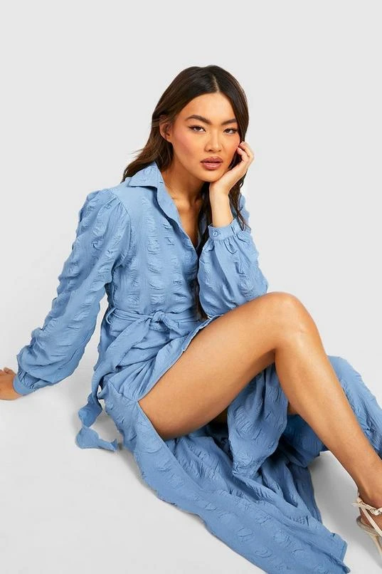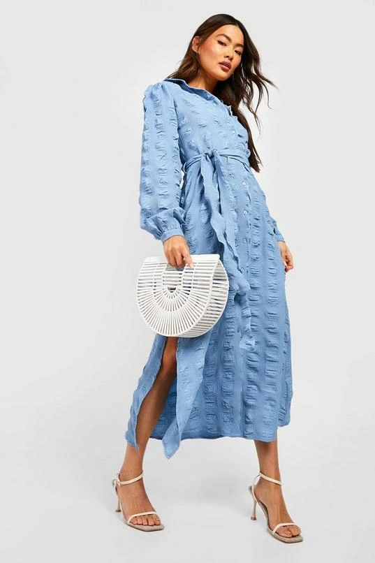 BOOHOO Textured Midi Shirt Dress