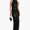 BOOHOO Textured Ruched Flare Sleeve Maxi Dress