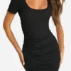 BOOHOO Textured Ruched Midi Dress