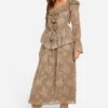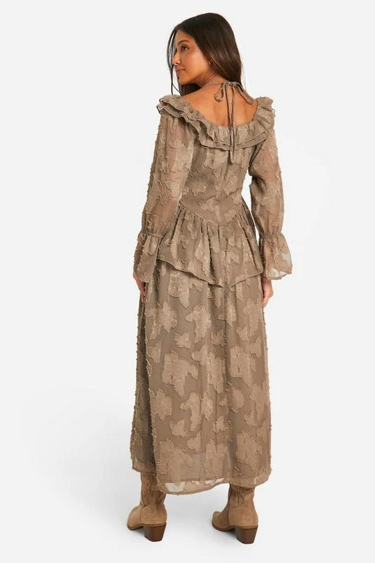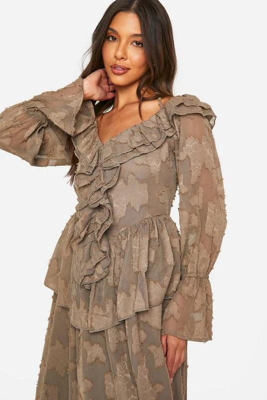 BOOHOO Textured Ruffle Front Midi Dress