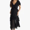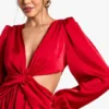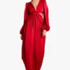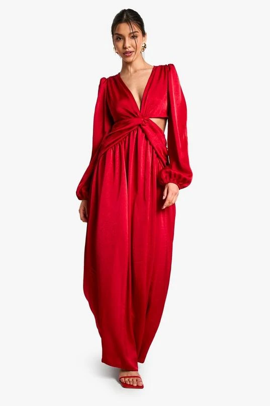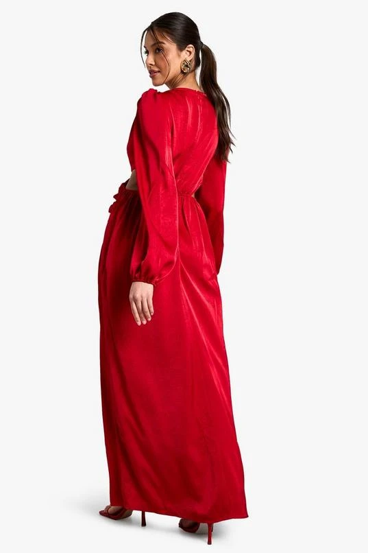 BOOHOO Textured Satin Cut Out Plunge Maxi Dress
