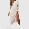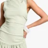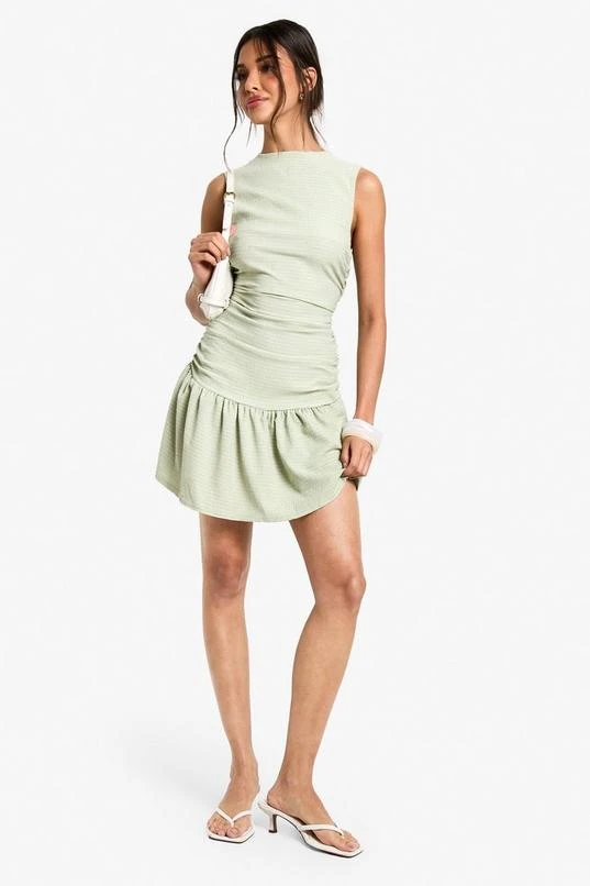 BOOHOO Textured Slash Neck Drop Waist Mini Dress