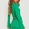 BOOHOO Textured Split Sleeve Top & Mini Skirt