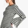 BOOHOO Textured Stripe Flare Sleeve Midi Dress