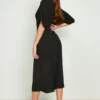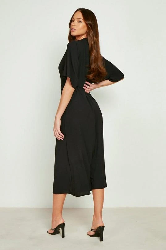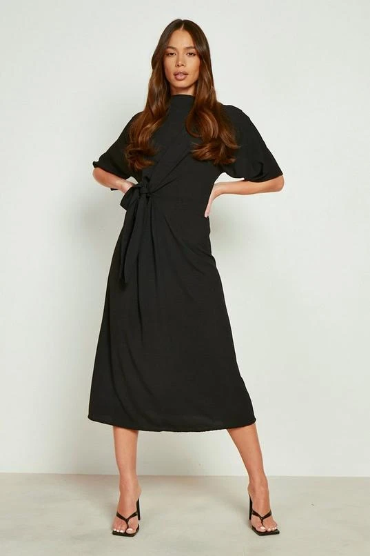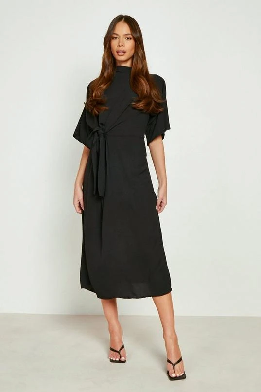 BOOHOO Textured Tie Front Cowl Neck Midi Dress