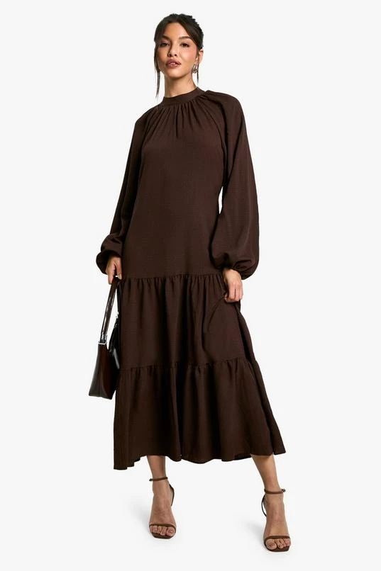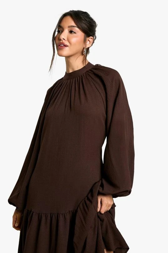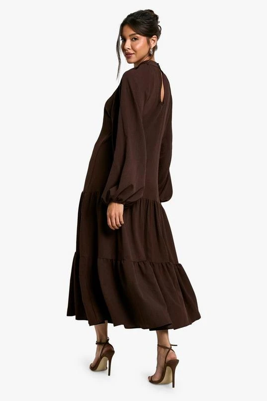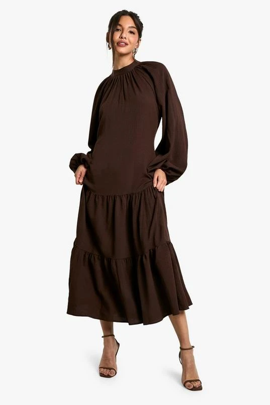 BOOHOO Textured Volume Smock Midaxi Dress
