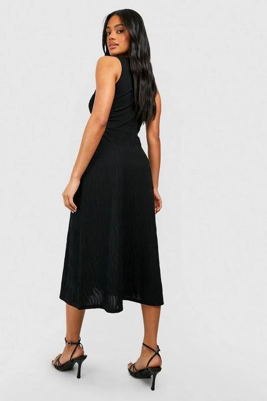 BOOHOO Textured Wave Rib Midi Dress