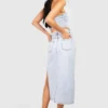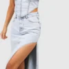 BOOHOO Thigh Split Denim Midi Skirt
