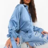 BOOHOO Tie Cuff Satin Oversized Shirt