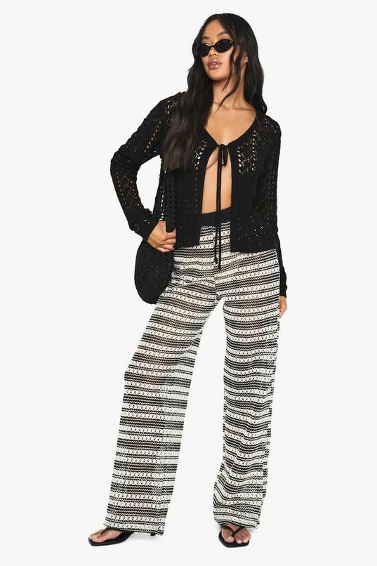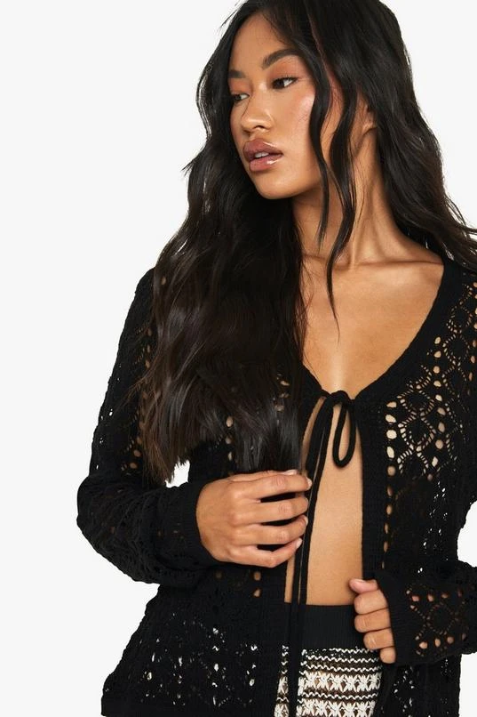 BOOHOO Tie Detail Crochet Cardigan
