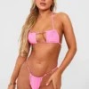 Cut shapes in this triangle bikini, the most popular style of bikini in women’s swimwear. This triangle string bikini is flattering for all shapes and sizes, featuring a triangle bikini top with padding inserts strung on thin straps and matching bottoms that tie at the side. With tie neck and back straps, you can style this triangle bikini in multiple ways, from halter-neck and criss-cross to bandeau and cross neck – the choice is yours.