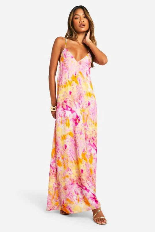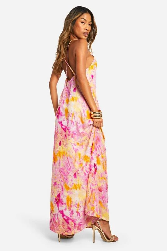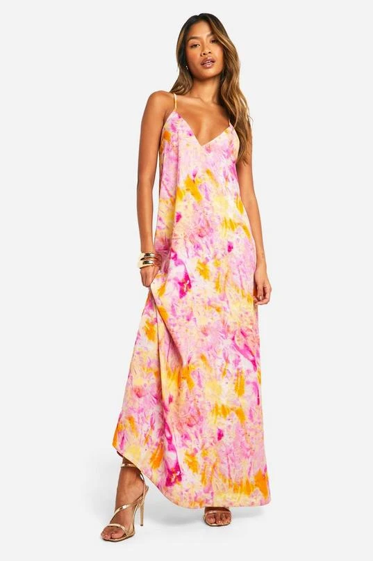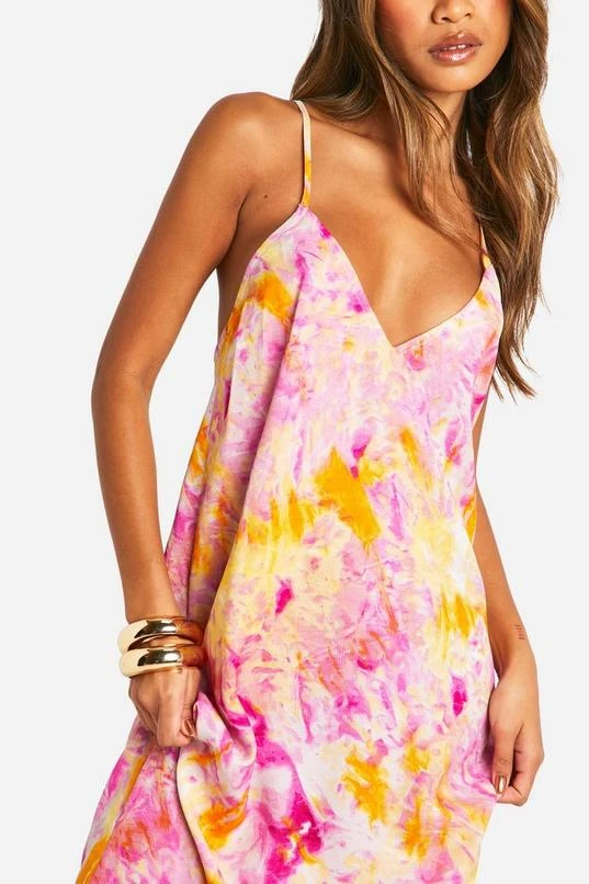 BOOHOO Tie Dye V Neck Strappy Maxi Dress