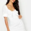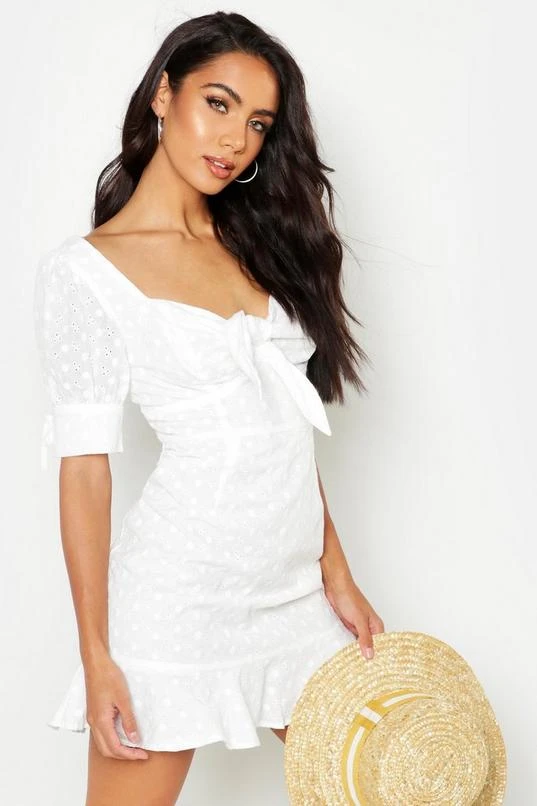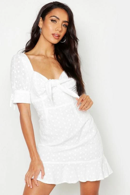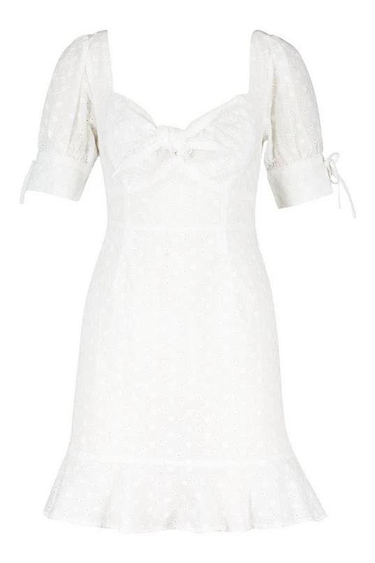 BOOHOO Tie Front Eyelet Anglaise Mini Dress