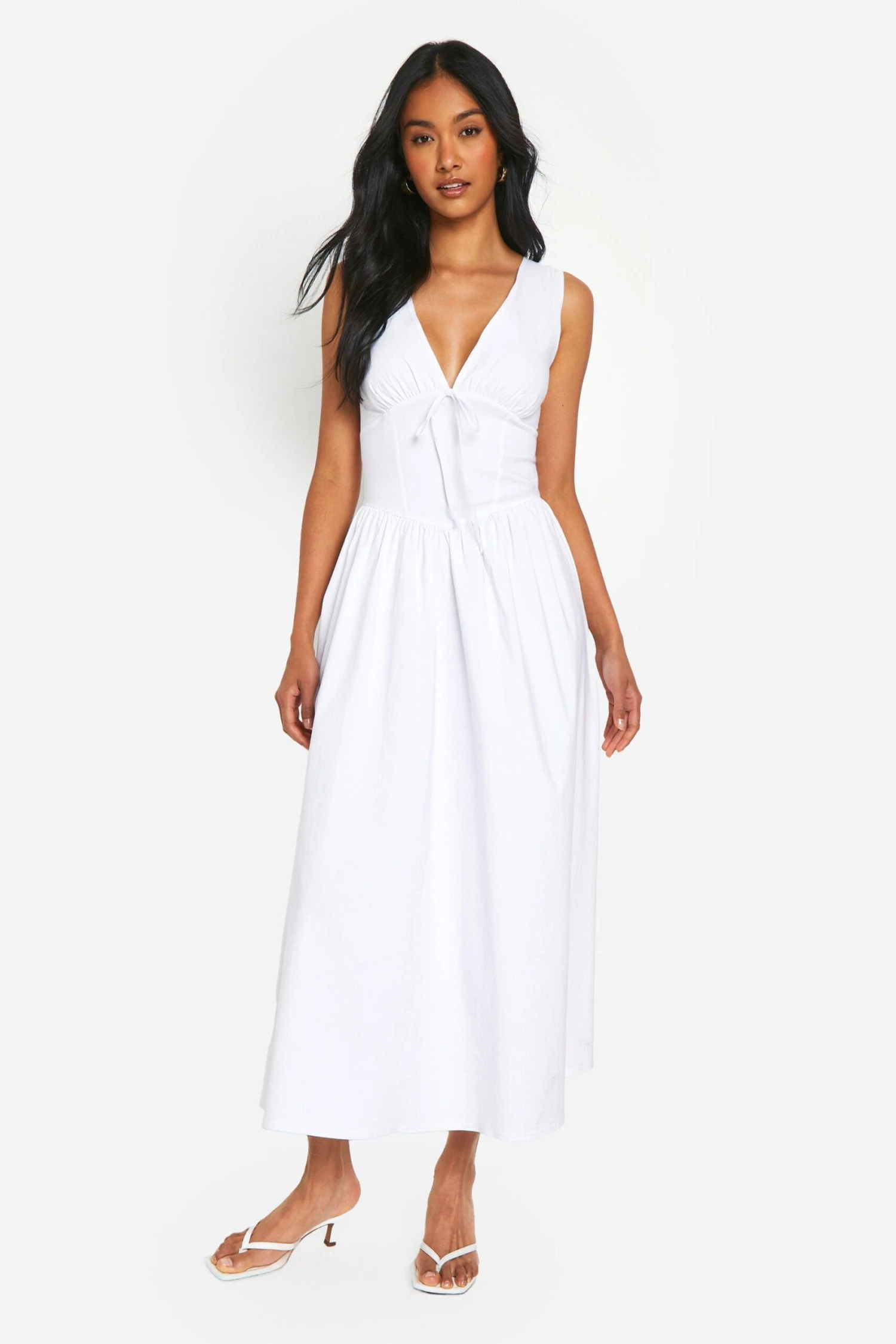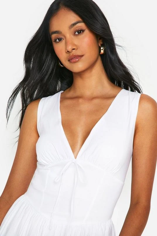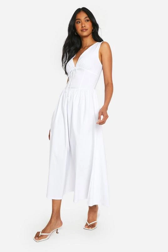 BOOHOO Tie Front Milkmaid Midaxi Dress
