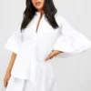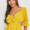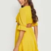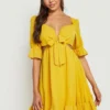 BOOHOO Tie Front Ruffle Hem Skater Dress