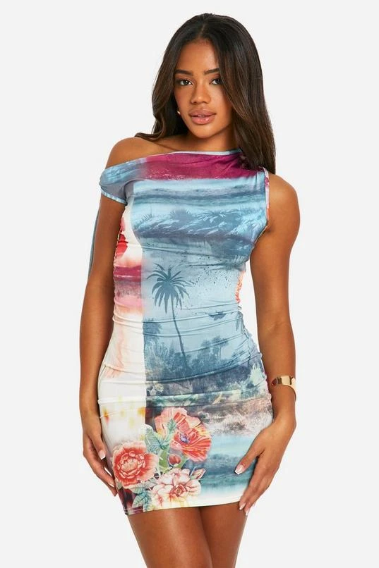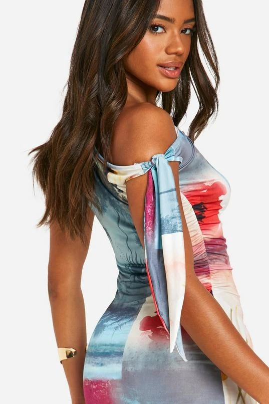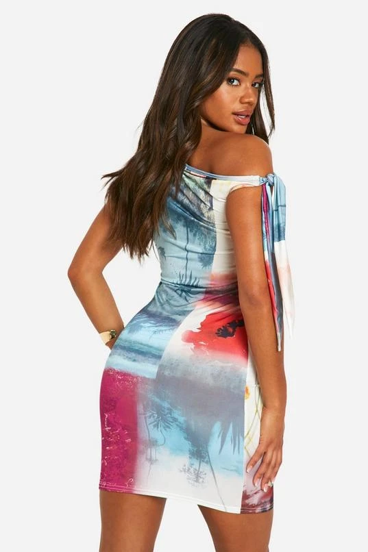 BOOHOO Tie Side Postcard Mini Dress