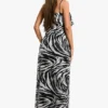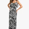 BOOHOO Tie Strap Zebra Frill Mesh Maxi Dress