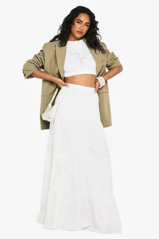 BOOHOO Tiered Cotton Poplin Maxi Skirt