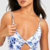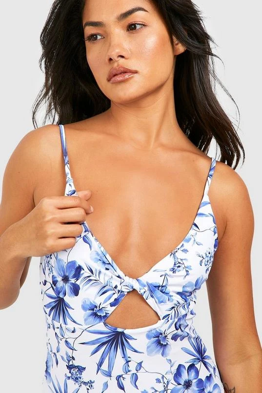 BOOHOO Tummy Control Porcelain Print Twist Swimsuit