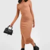 BOOHOO Turtle Neck Rib Knit Midi Dress