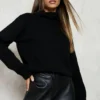The classic turtleneck sweater is a real mood, and we’re totally vibing it. There’s no better way to fight off the cold than with an ultra-high roll neck style mock neck sweater; it’s one of our favorite styles. We love pairing it with a fitted silhouette with high-waisted jeans or a mini skirt and boots to show off your curves with a seasonal update. Great for layering, a black turtleneck sweater is a closet essential for every woman; we wouldn’t be caught without it.