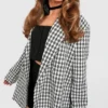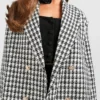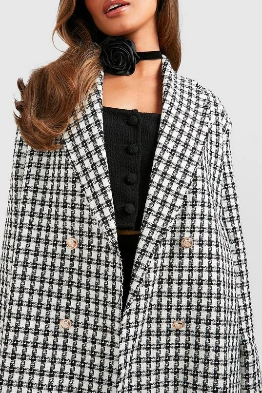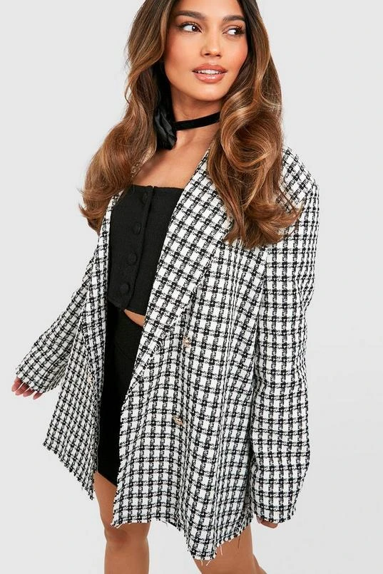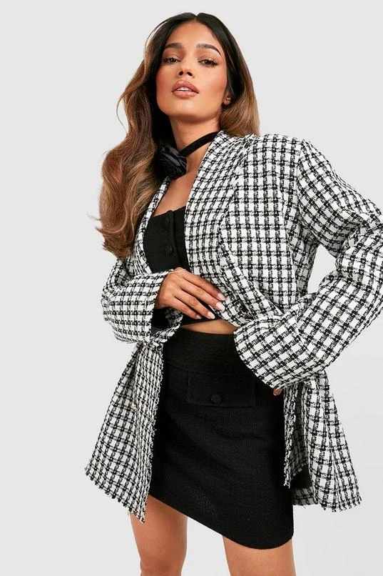 BOOHOO Tweed Flannel Double Breasted Frayed Hem Tailored Blazer