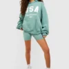 BOOHOO Usa Slogan Sweatshirt And Short Set