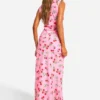 BOOHOO V Neck Cherry Print Maxi Slip Dress