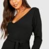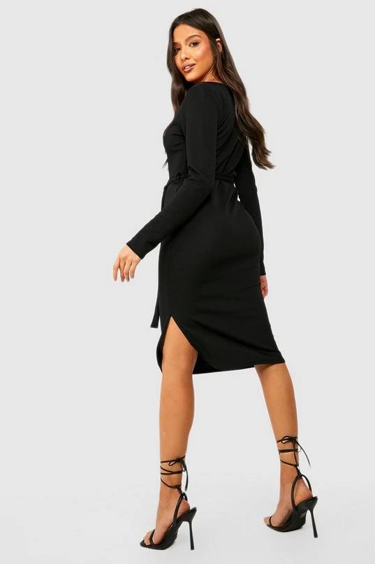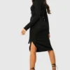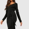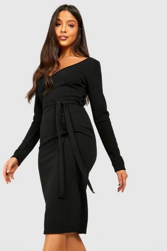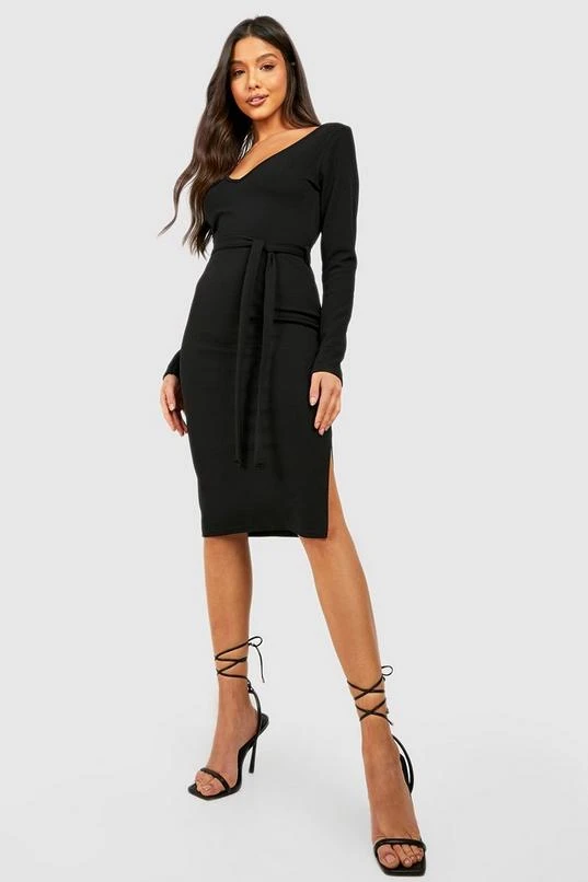 BOOHOO V Neck Tie Waist Midi Dress
