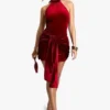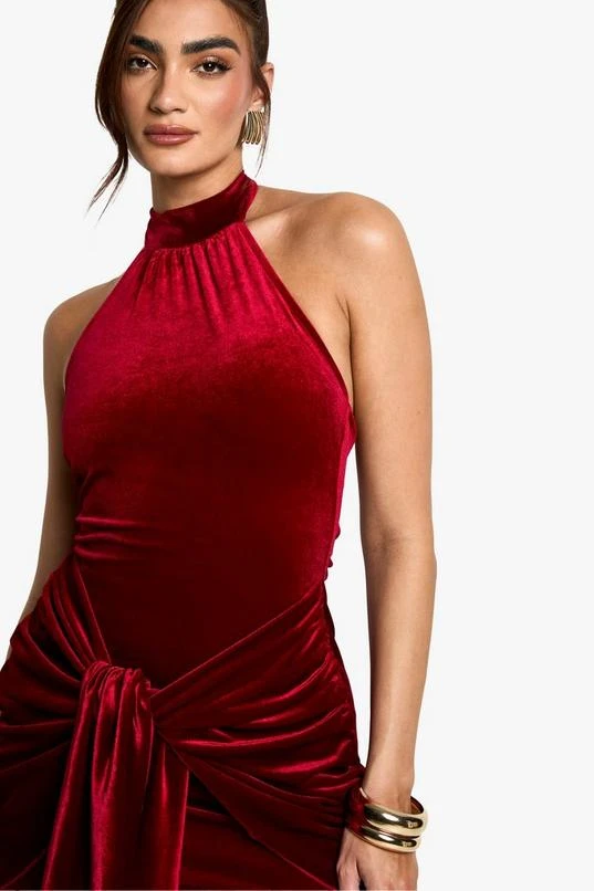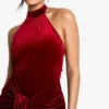 BOOHOO Velvet Tie Waist Racer Mini Dress