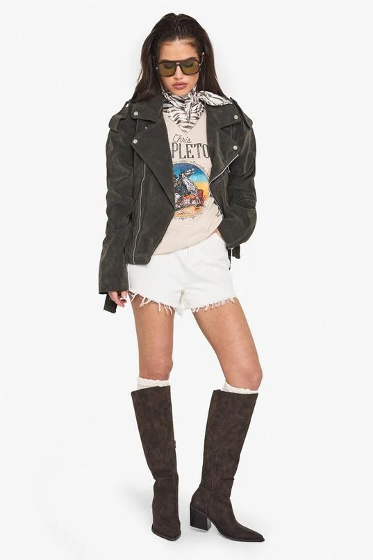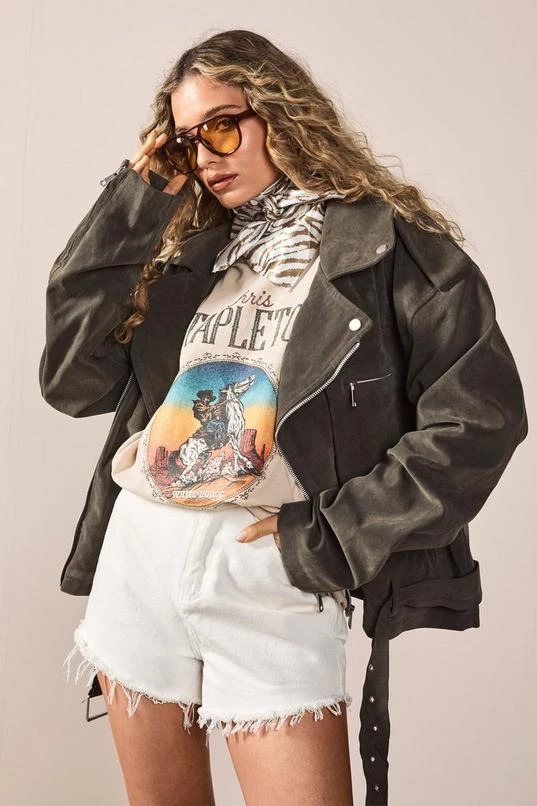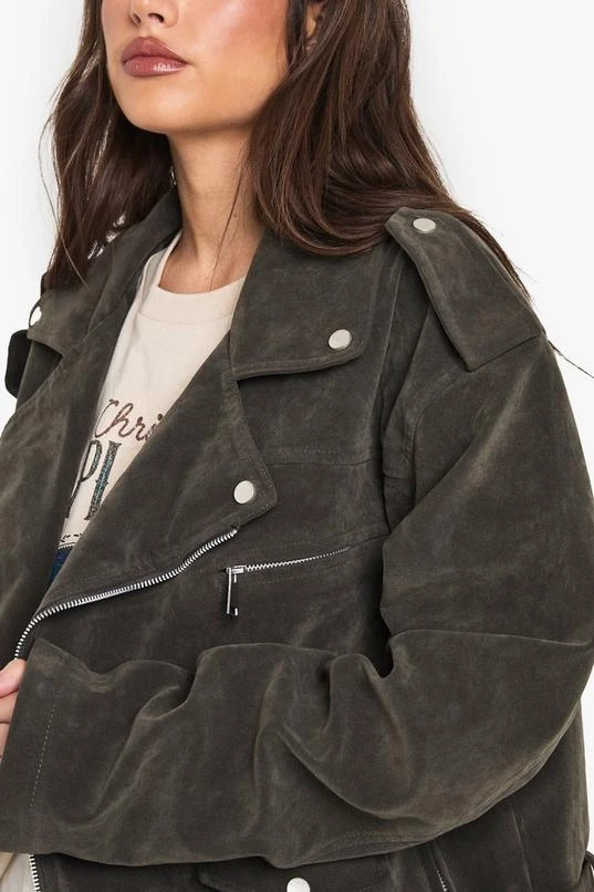 BOOHOO Vintage Suede Look Oversized Moto Jacket