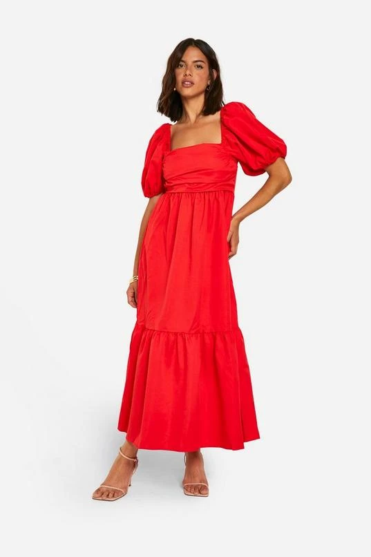 BOOHOO Volume Puff Sleeve Midaxi Dress