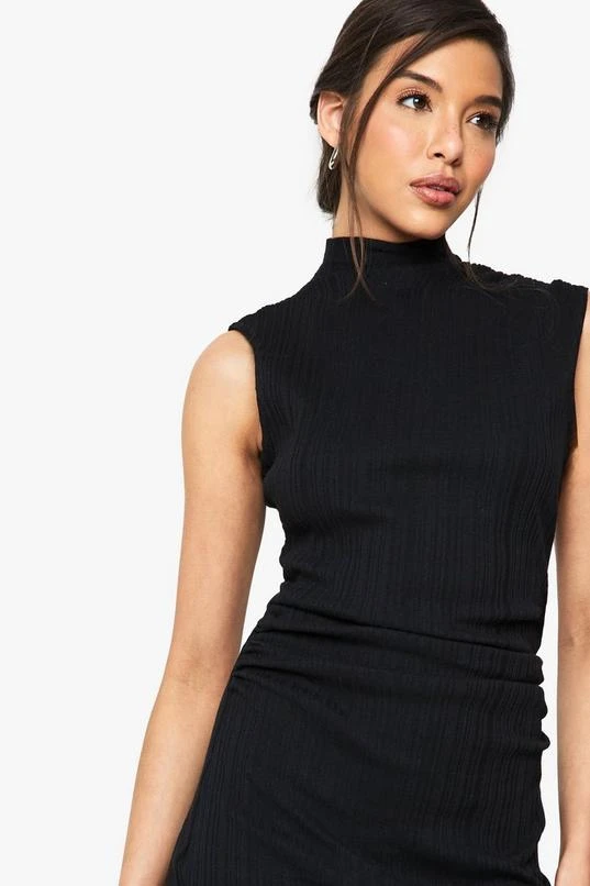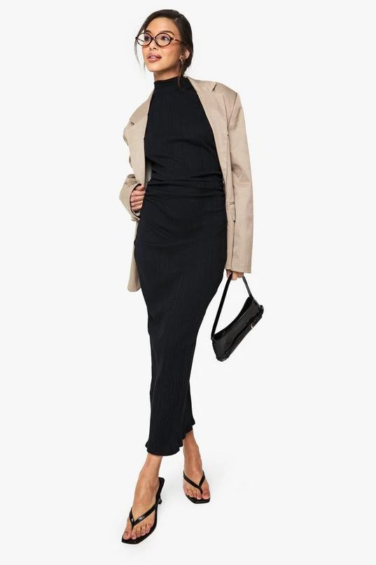 BOOHOO Wide Rib High Neck Colloum Maxi Dress