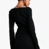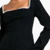 BOOHOO Woven Crepe Pearl Trim Square Neck Structured Mini Dress
